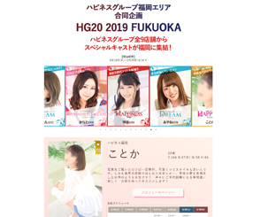 | 工夫した点・結果 | なぜか以前の福岡エリア店舗イベントLPのひな型のデザインに戻った(たぶんデザイン作成の時間がなかったと記憶)。 今回は福岡エリア2店舗の合同イベントということで「キャストがどちらの店舗のイベントに参加するか」を明確にするため、イベント参加キャスト情報の色を分けている。 |